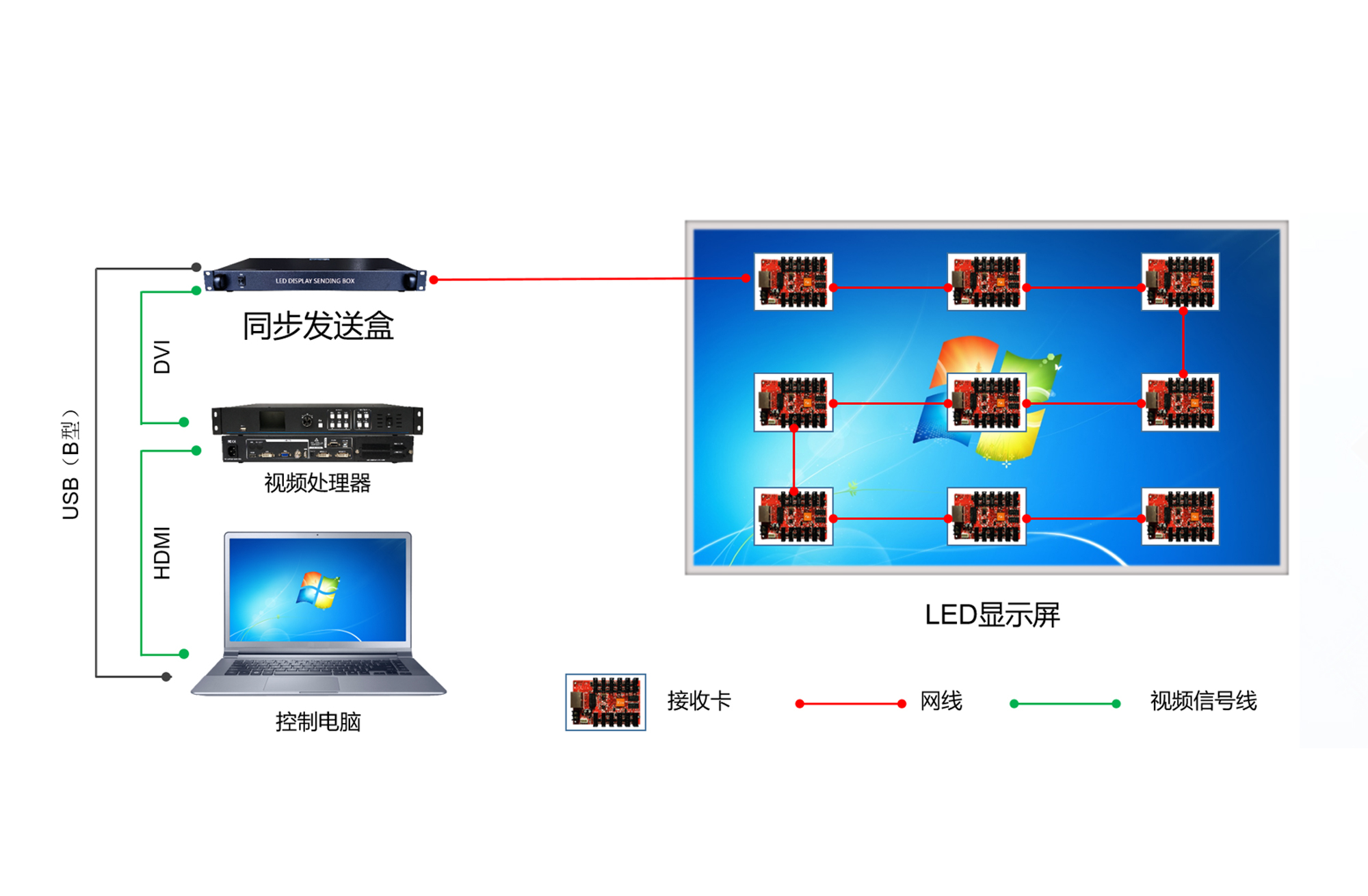 Huidu HD-T902x2 5.2 million pixel Led display sending box Connection diagram: