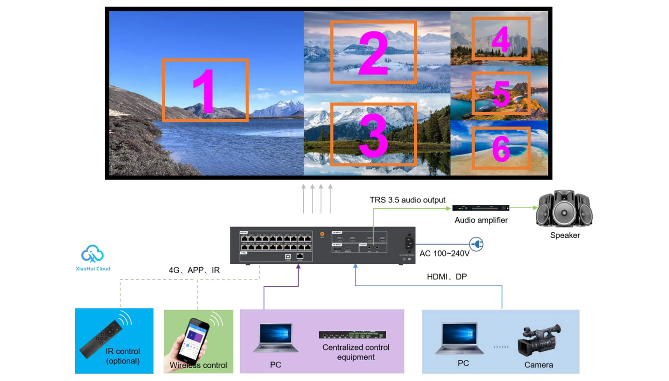 Support six-window free layout, 3x4K or 2x4K+4x2K or 6x2K.